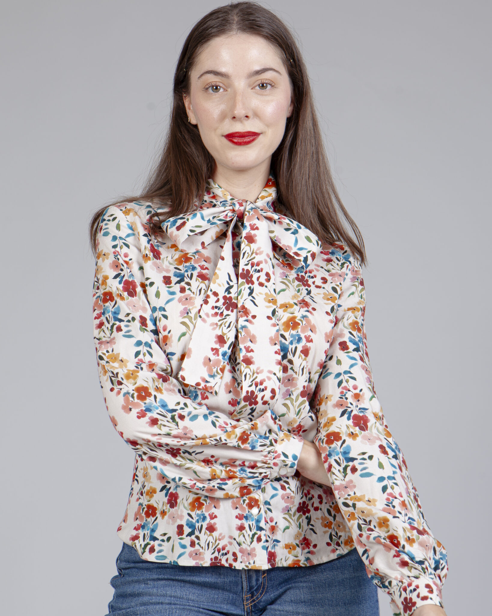 Blusa con estampado floral y lazada al cuello