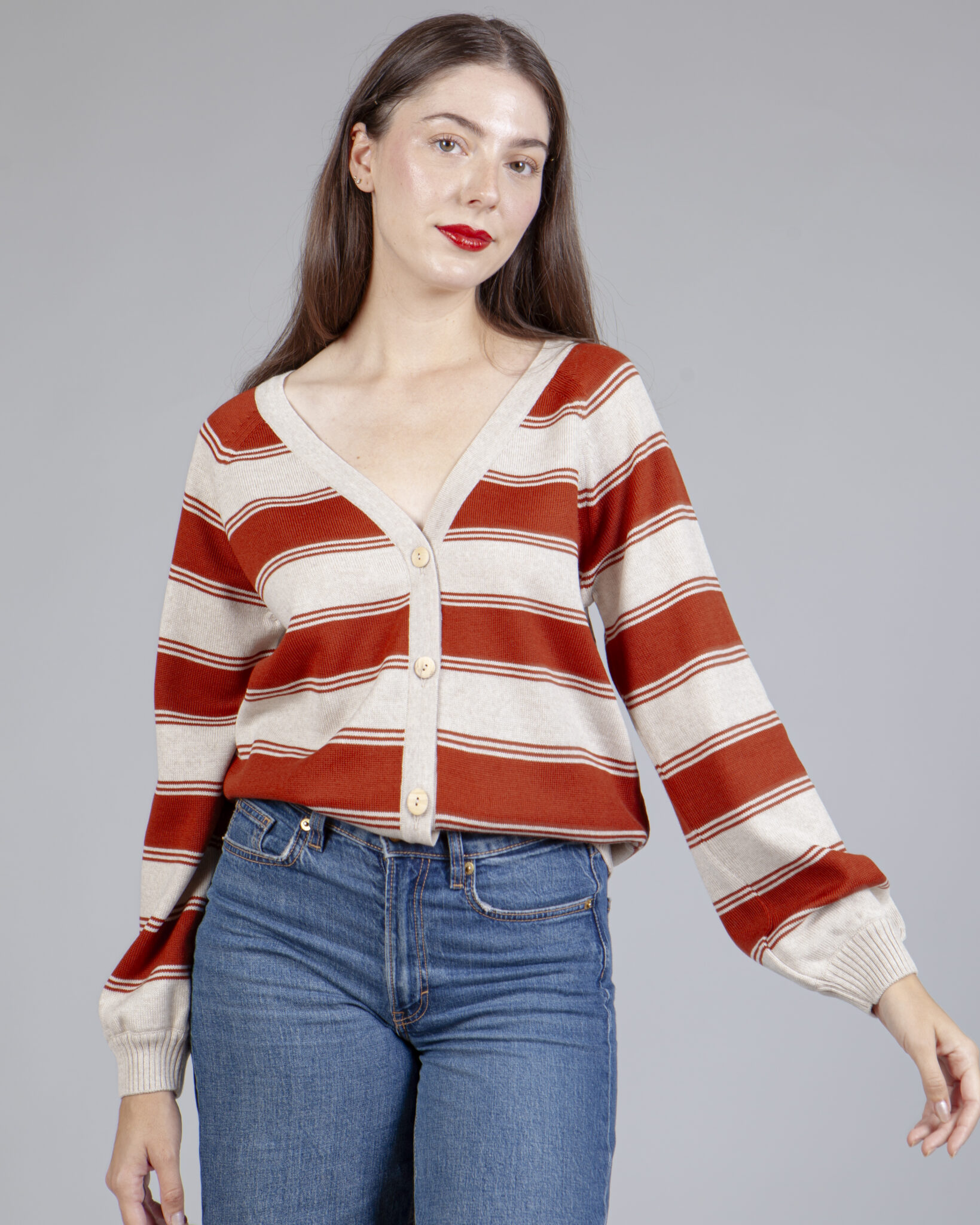 Chaqueta de punto a rayas bicolor PREVENTA, TARDA APROXIMADAMENTE 15 DÍAS